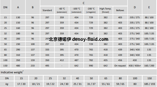 DN15-150, PN16/40, ANSI150/ANSI300