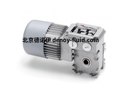 蝸桿減速電機。單相或三相電機,功率從 14 W 到 180 W。中心距 26 毫米。