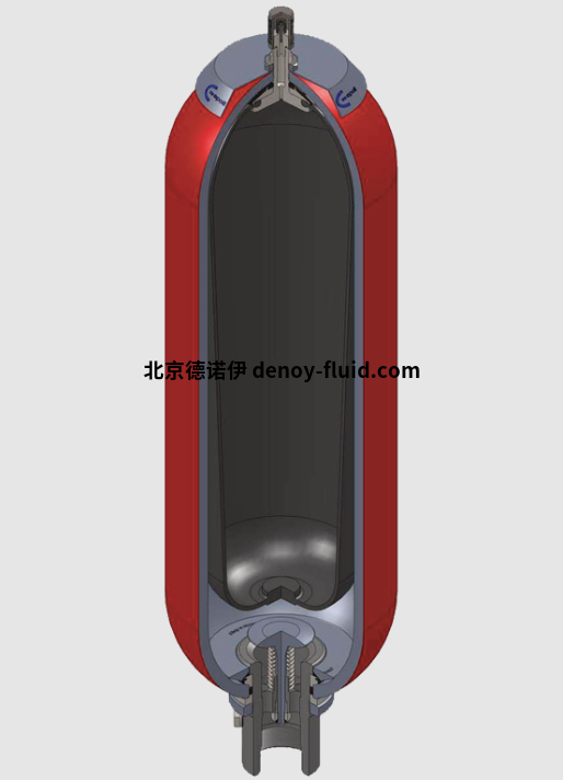 蓄能器通過安裝在容器內(nèi)部的彈性氣囊細分為氣體側(cè)和流體側(cè)。