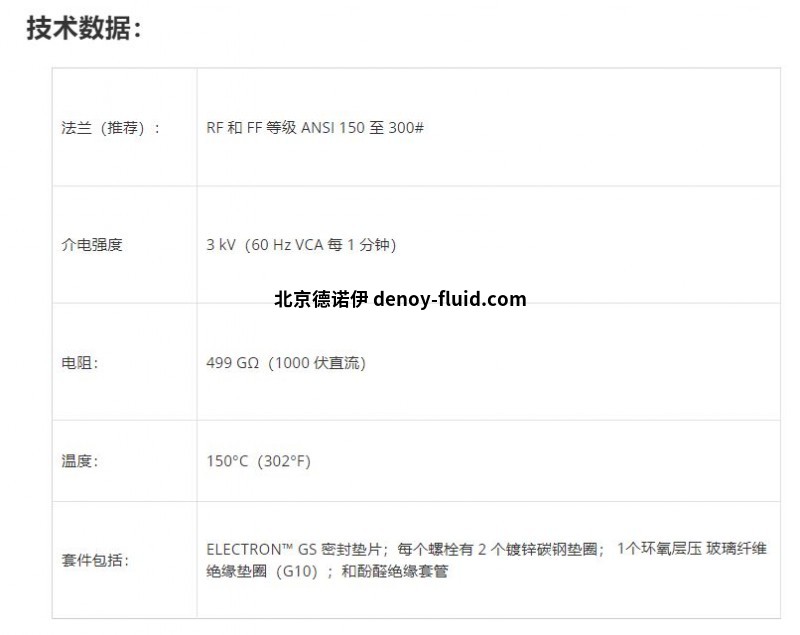 套件包括: ELECTRON™ GS 密封墊片;每個螺栓有 2 個鍍鋅碳鋼墊圈; 1個環(huán)氧層壓 玻璃纖維絕緣墊圈(G10);和酚醛絕緣套管