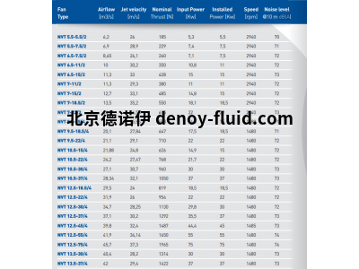 NVT 型噴射風(fēng)機(jī)的葉輪直徑從 500 mm 到 1600 mm,信任范圍從 185 N 到 2810 N 不等。